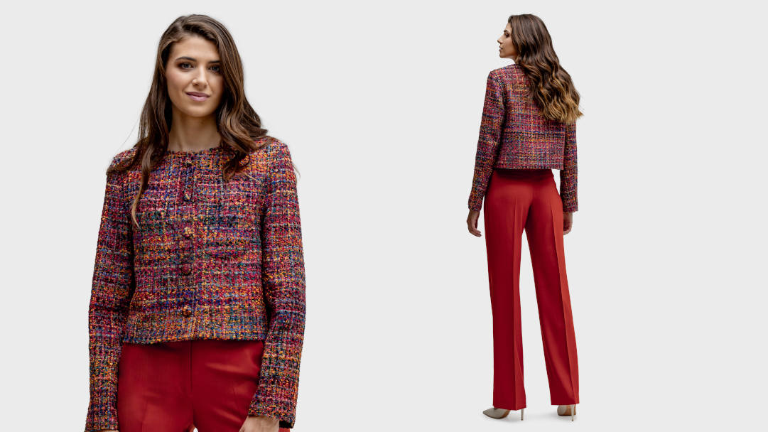 Retro-Tailoring mit modernem Twist: Klassiker wie Doppelreiher, Karos und Houndstooth werden kombiniert mit Power-Shoulders und Taillengürtel. Ebenso sind Bouclé- und Tweedblazer in Greige oder Burgundertönen ein Must-Have: Sie sind edel, unaufdringlich und elegant.