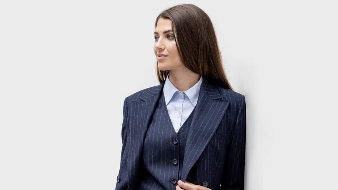 Taillenbetonte Hosen mit weitem Bein und hoher Taille werden für die Balance mit schmalen Oberteilen kombiniert. Bei den Jupes sind die Midilängen wieder gefragt. Strukturierte Wollröcke oft in Beige- oder Erdtönen gewinnen an Bedeutung, besonders in Kombination mit Stricktop und Strickcardigan in feiner Merinowolle oder edlem Kaschmir für den Office-Look.
