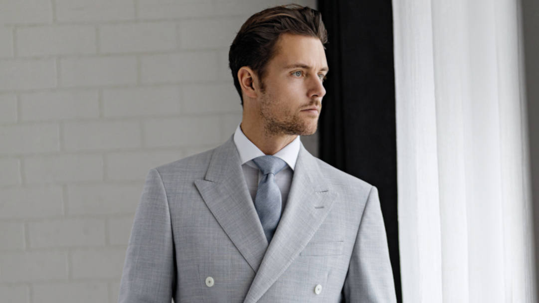 Sie wählen den Stoff, der Ihnen am meisten zusagt. Zusammen mit Ihrem Berater bestimmen Sie die Verarbeitung und die Details, auf die Sie Wert legen, wie Taschen, Revers, Futter oder Knöpfe.